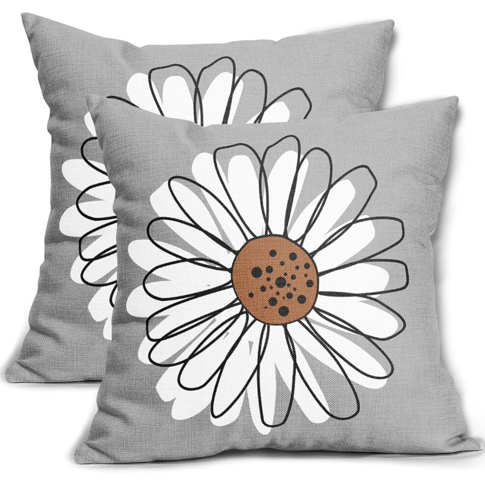 Brown & White Daisy Pillow Covers 16x16, Set of 2, Spring/Summer Gray Linen Throw Pillows for Sofa, Couch, Bed â Compatible with Standard Inserts