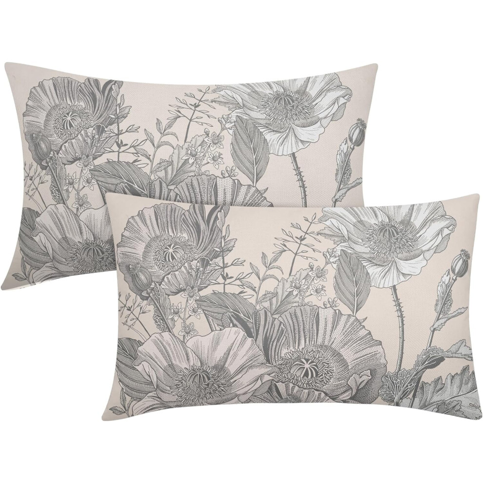 Vintage Floral Lumbar Pillow Covers 12x20", Set of 2, Gray Rectangular Throw Pillows for Sofa, Living Room, Outdoor â Compatible with Standard