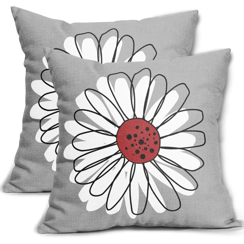 Red & White Daisy Pillow Covers 16x16, Set of 2, Spring/Summer Gray Linen Throw Pillowcases for Sofa, Couch, Bed â Compatible with Standard Inserts
