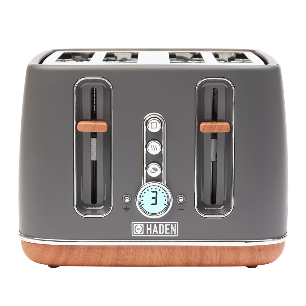 Haden Dorchester Grey Toaster 4 Slice - Variable Browning Levels - Digital Controls & Wide Slots 4 Slice Toaster - Cancel/Defrost/Reheat Settings -
