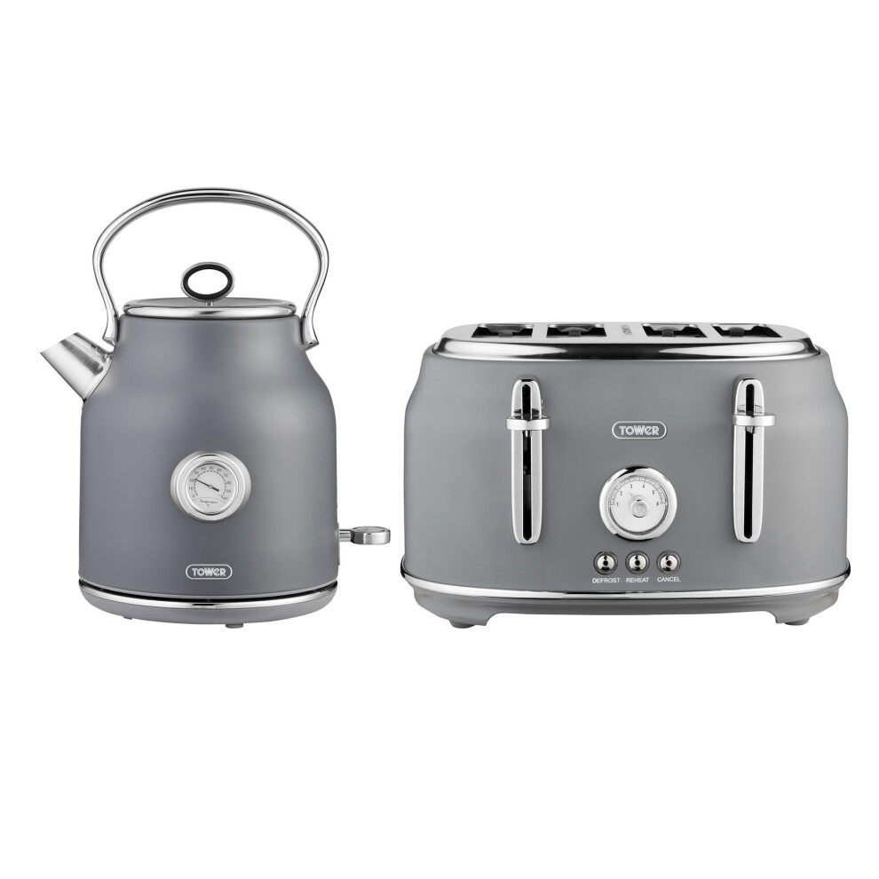 Swan Retro Kitchen Set, 1.7L Kettle and 4 Slice Toaster, Grey EEJB393