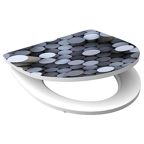 Schütte Round Dips Toilet Seat with Soft-Close Mechanism, High-Gloss Toilet Lid with Motif and Quick Release for Cleaning, Duroplast Toilet Lid (Max. Load of The Toilet Seat 150 kg), Grey