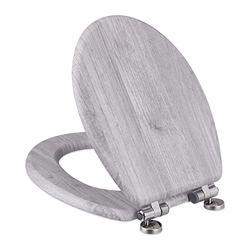 Relaxdays 10037709 Soft-Close Mechanism, W x D 37 x 46 cm, Oval Lid, Quick Release, Toilet Seat Wood Look, Grey, Gray