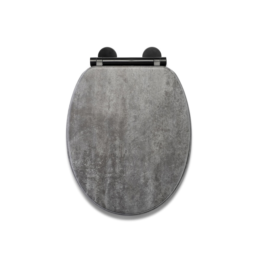 Grey Toilet Seat Slate Effect Chrome Hinges Easy Install Standard Toilet Seat