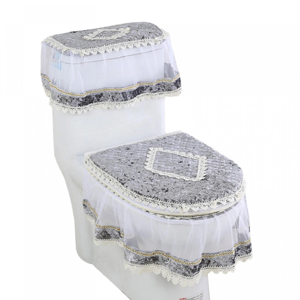 3PCS Toilet Seat Cover Set Grey Toilet Seat Lid Tank Cover for Bathroom Lace Thicker Toilet Seat Cushion Warmer Washable