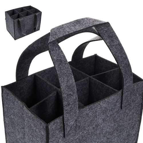 SOIMISS Felt Wine Bottle Storage Pouch Grey Tote Bag Portable Holder for 6 Bottles Red Wine Carrying Bag
