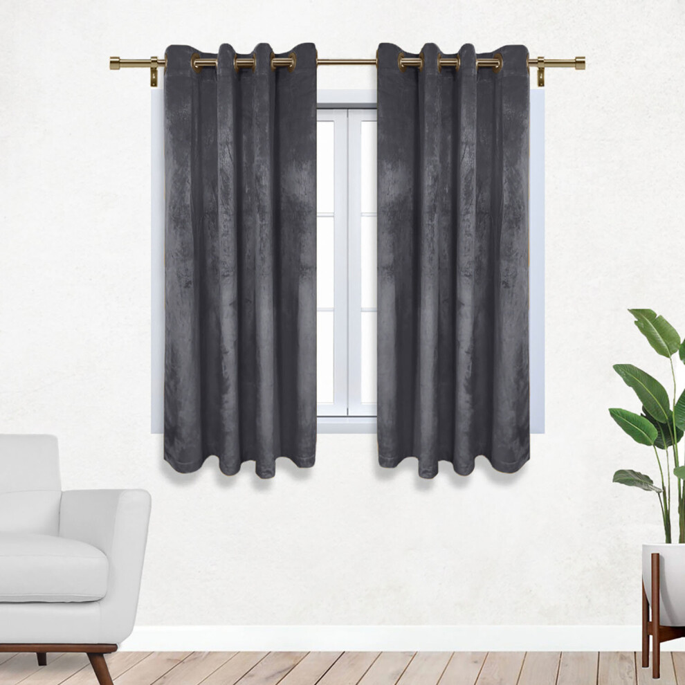 Enhanced Living Hampton Premium Velvet Grey Blackout Curtains for Bedroom - 46x54 inch (117x137 cm) Supersoft Eyelet Curtains for Living Room - 2 x Curtain Panels