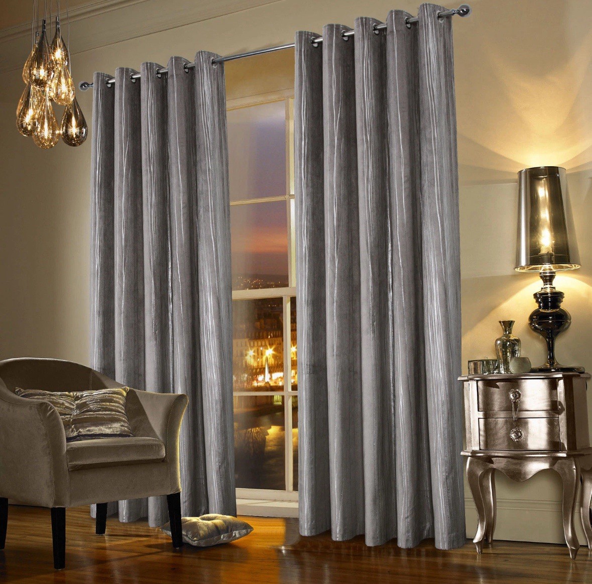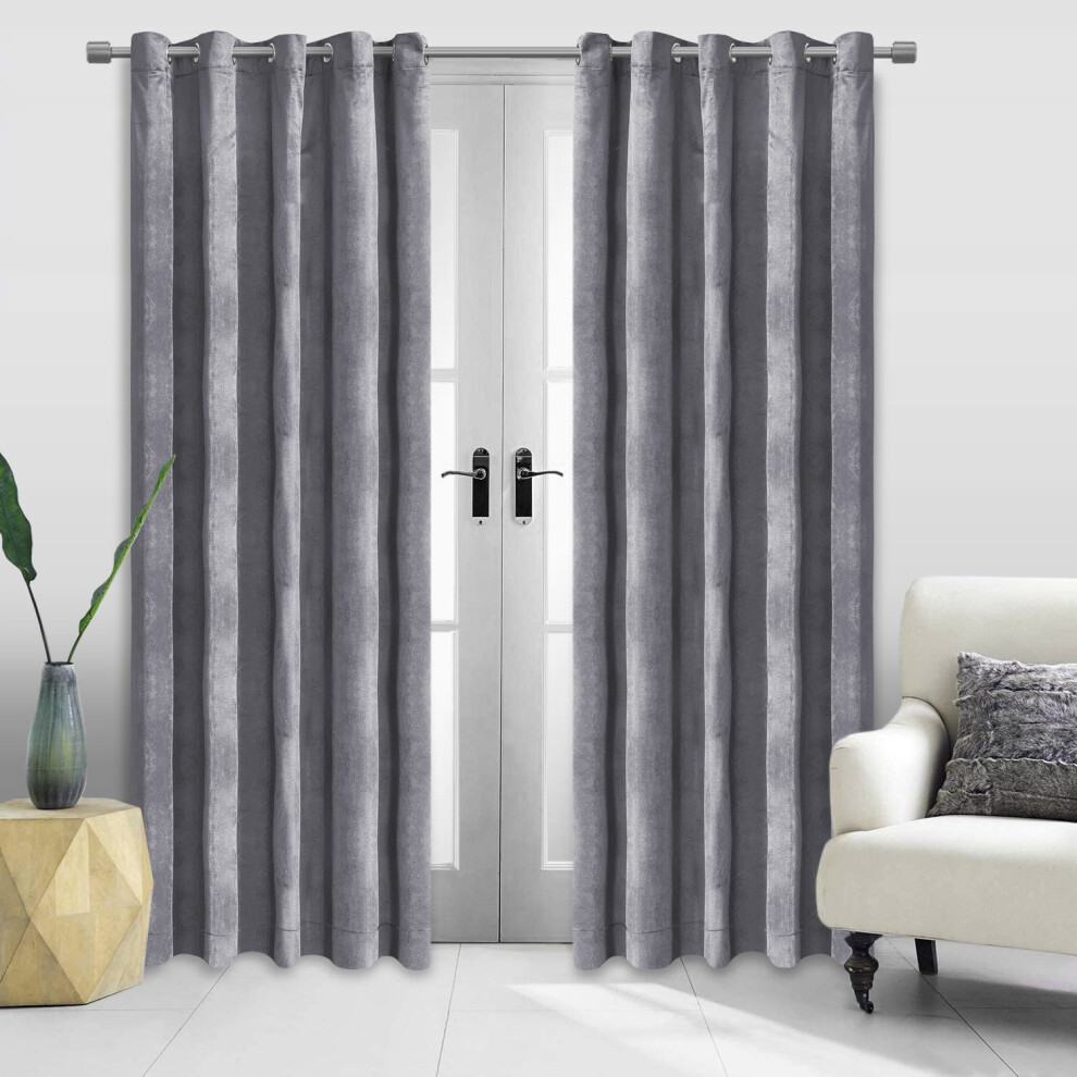 Grey Velvet Curtains Thermal Winter Eyelet, Fully Lined Readymade Glimmer
