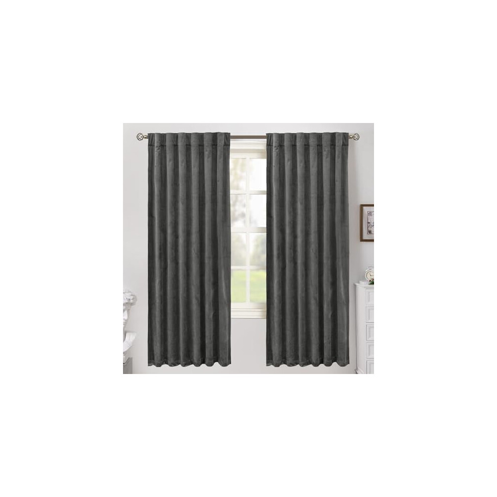 Grey Velvet Blackout Curtains 60x84â, Thermal Insulated, Noise Reducing, Back Tab & Rod Pocket, 2 Panels, Compatible with Standard Rods