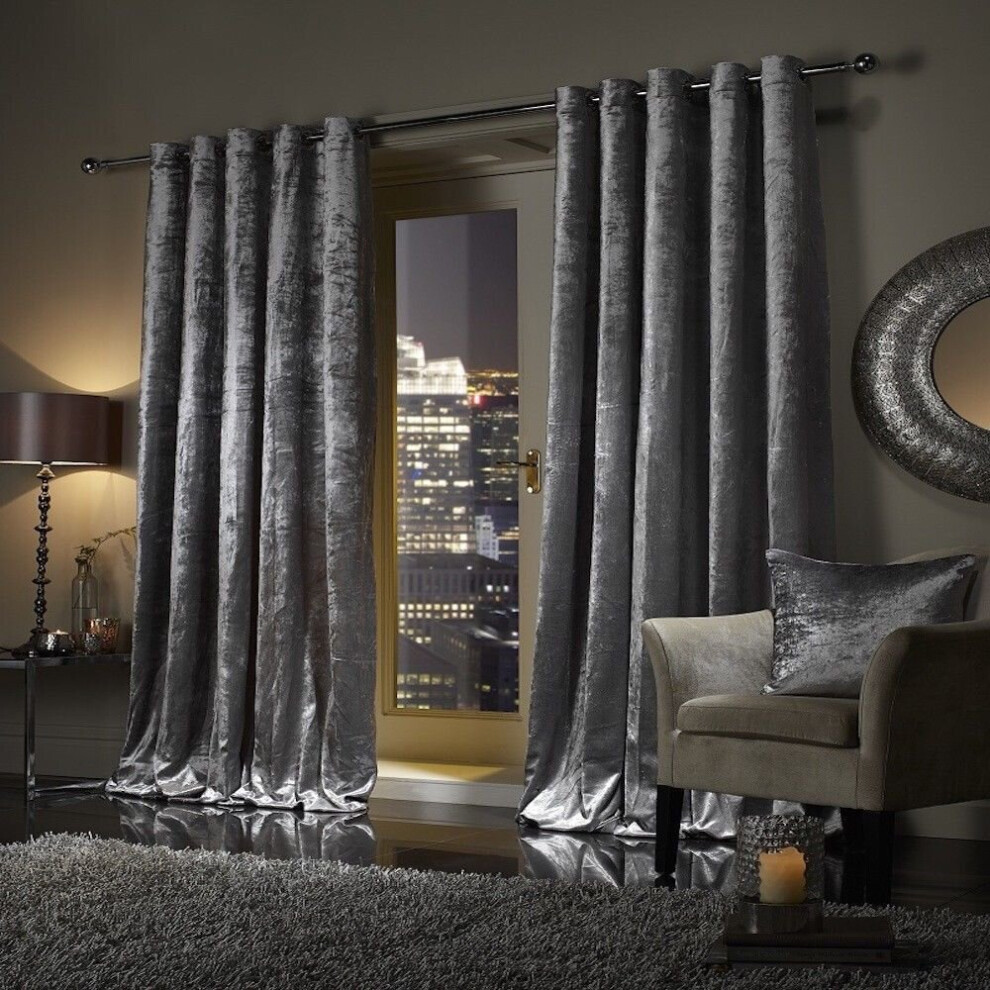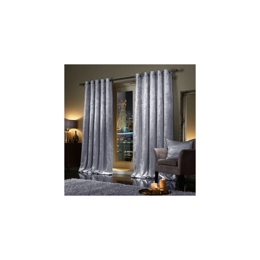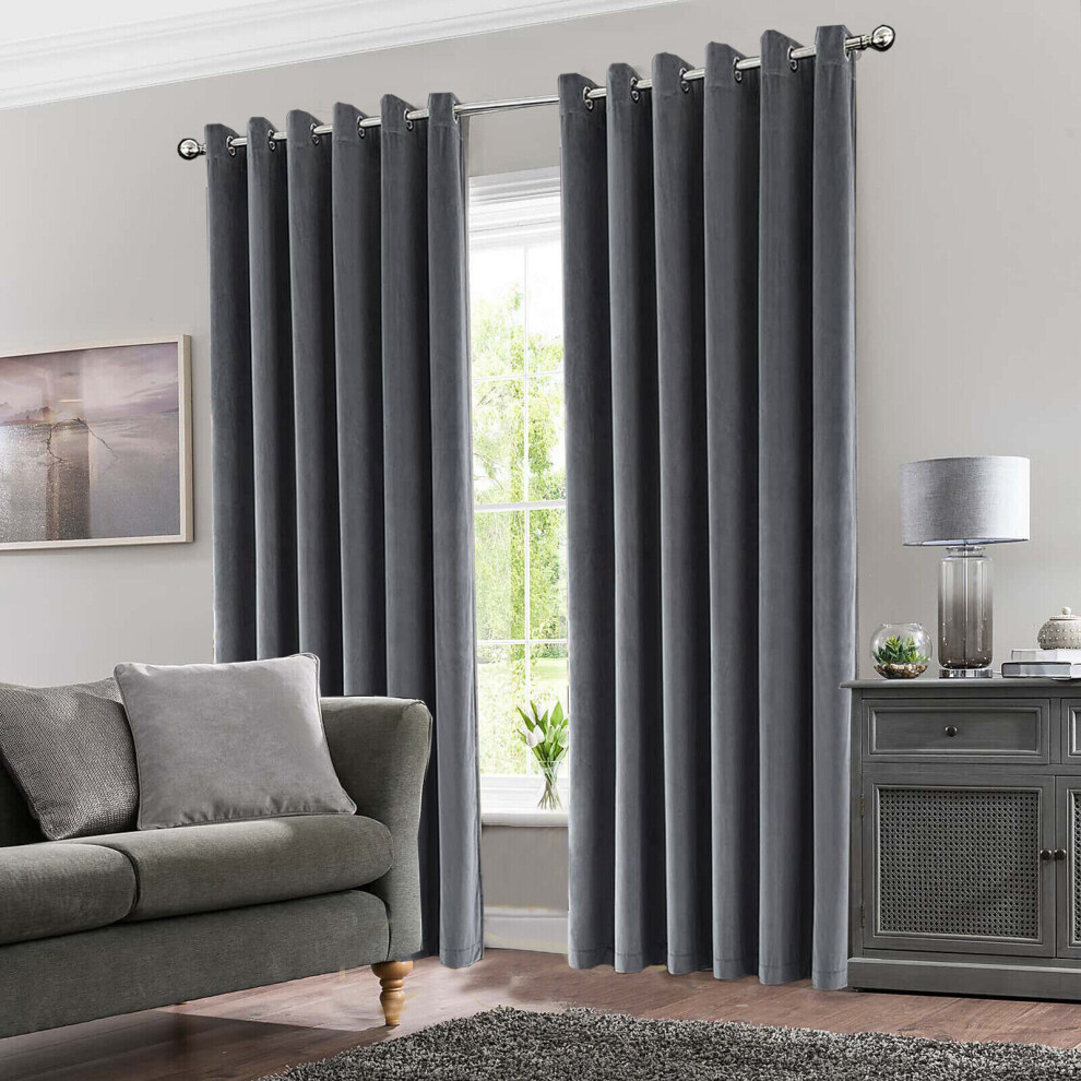 (46" x 54" (116cm x 137cm), Grey Velvet Curtain) Velvet Curtains Eyelet Ring Top Pair Fully Lined