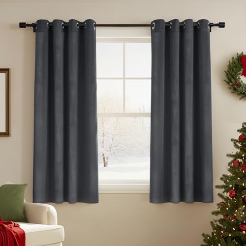 MIULEE Grey Velvet Curtains for Bedroom 2 Panel Set 54 Inch Drop Curtains, Soft
