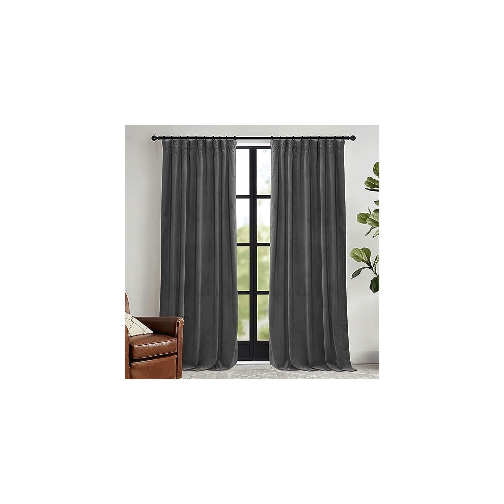 JIUZHEN Grey Velvet Curtains for Living Room -108 inches Long Thermal Insualted Room Darkening Window Drapes for Bedroom Set of 2 Panels with Tieback