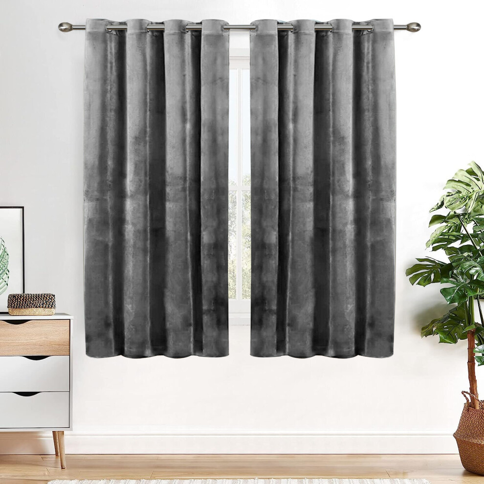 Deconovo Grey Velvet Curtains 46 x 54 Inch Soft Blackout Thermal Curtains Eyelet Elegent Room Darkening Drapes for Kitchen One Pair