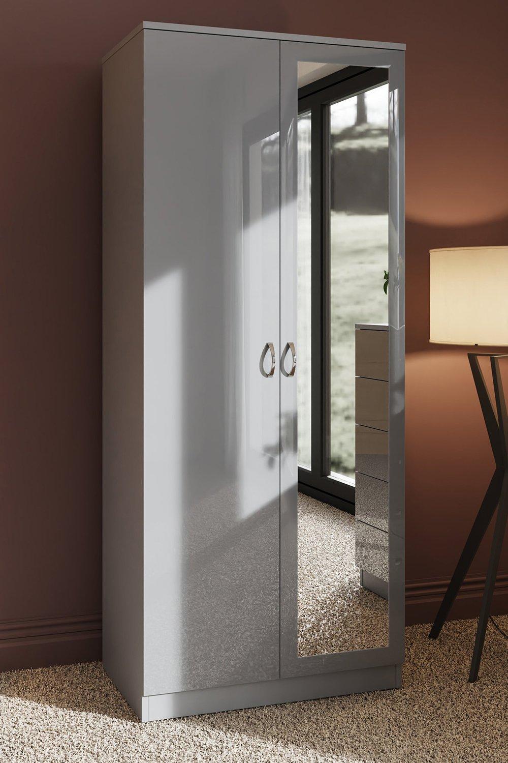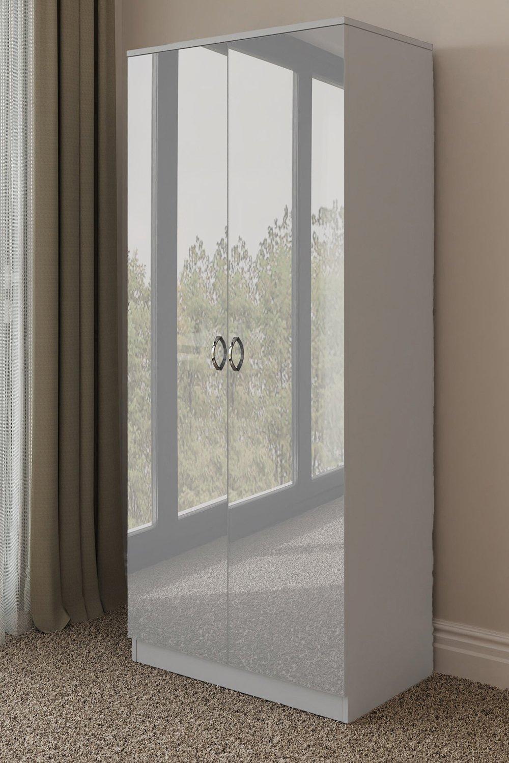 2 Door High Gloss Grey Double Wardrobe - Chilton