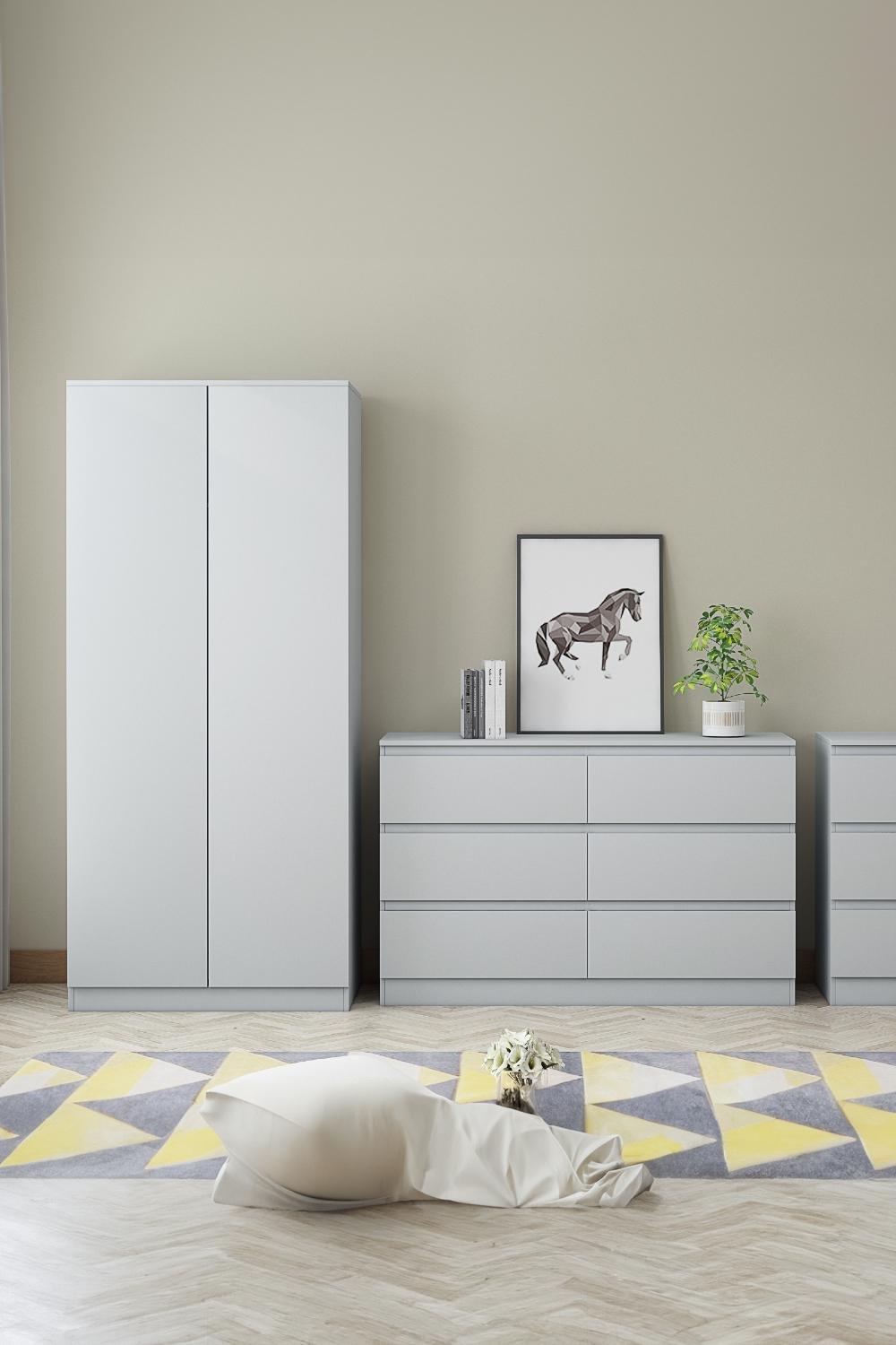 Light Grey Wardrobe 2 Door Bedroom Furniture Modern Style