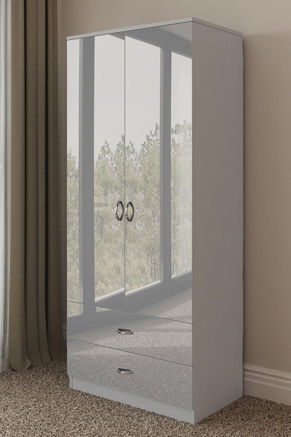 2 Door High Gloss Grey Mirrored Double Wardrobe - Chilton