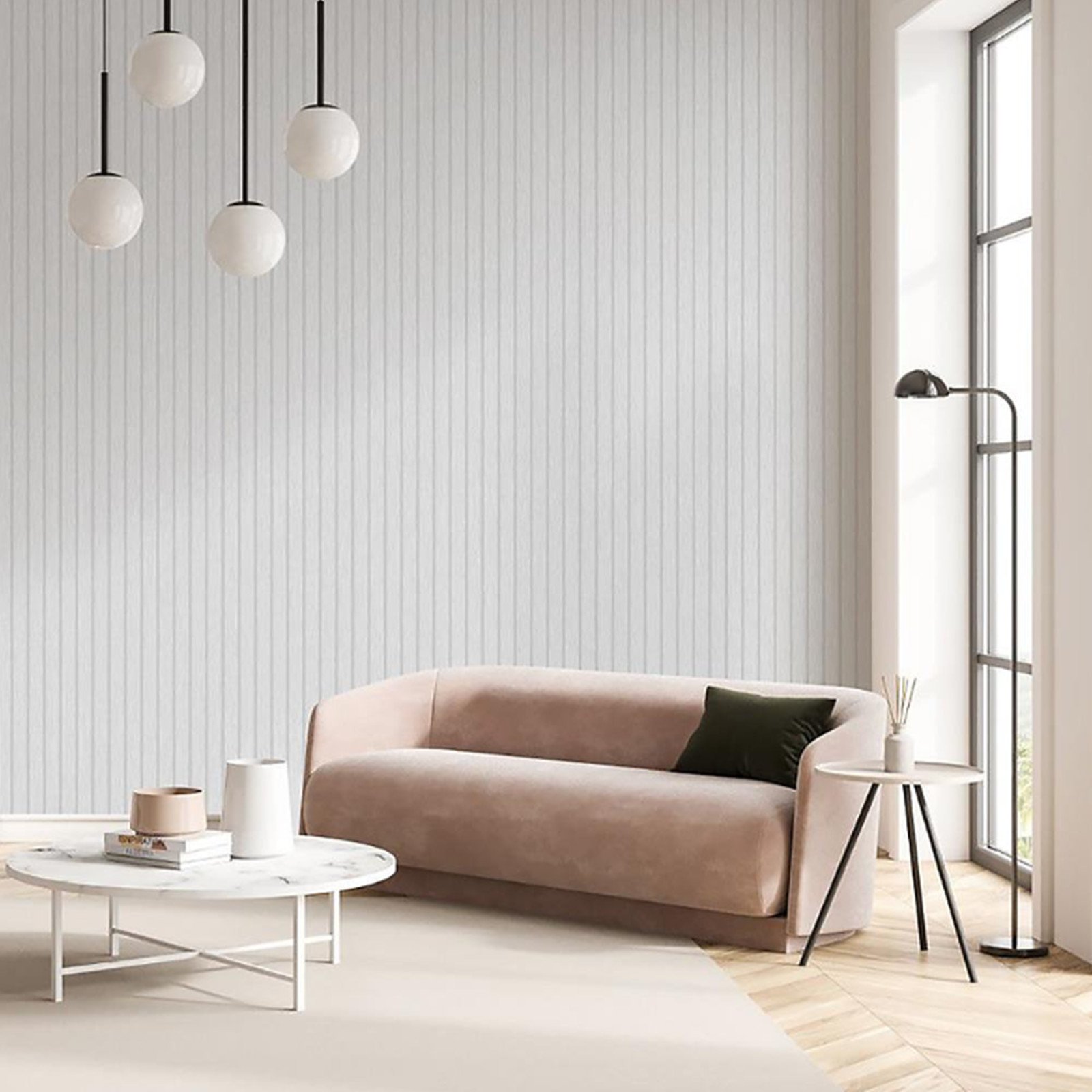 Light Grey Wood Effect Vinyl Wallpaper Vertical Panel Plank Scandinavian Style