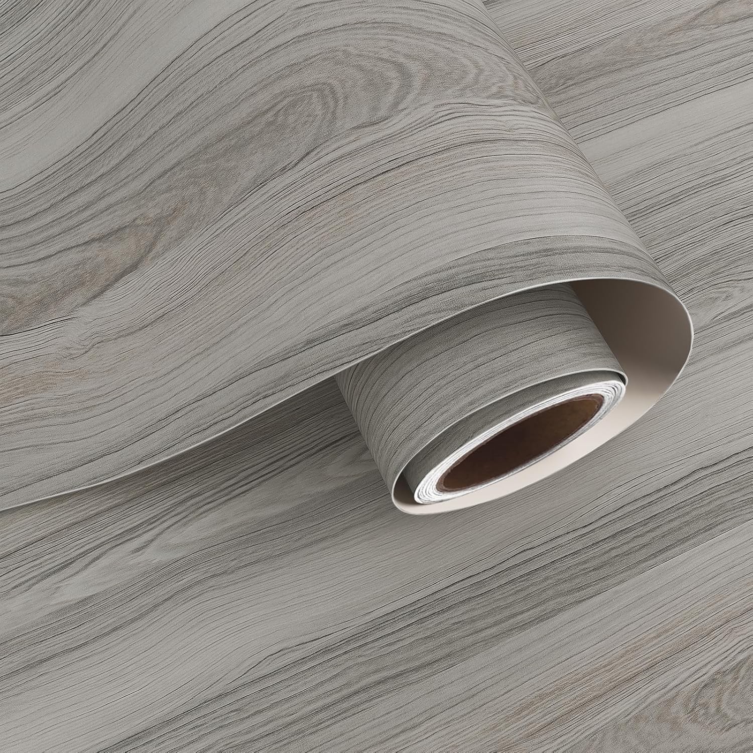 Livelynine 45CMx7M Grey Wallpaper Wood Effect Sticky Back Plastic Self Adhesive