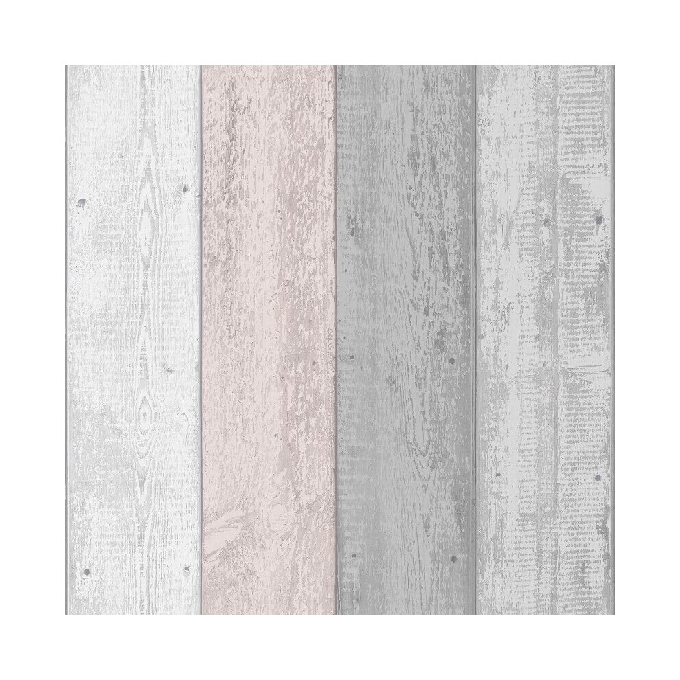 Arthouse Pink & Grey Painted Wood Effect Wallpaper - Wide Wood Planks - Distinctive & Modern has a Natural Beauty of its own - Palette of Greys & Pinks Softens & Introduces a Light & Airy Feel 902809