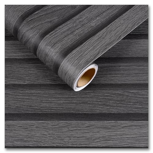 CRE8TIVE Black Grey Wallpaper Wood Effect Vinyl Self Adhesive 30cm x 900cm 3D Wood Panel Effect Contact Paper Kitchen Wallpaper for Bedroom Living Room Waterproof Vinyl Wrap for Furniture Cupboard