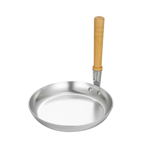 Ailan Portable Frying Pan Griddle Round Aluminum Durable Lightweight Cooking Tool Home Kitchen Camping Cooking Needs Induction Grill Pan Wooden Handle Fry Skillet, Type A
