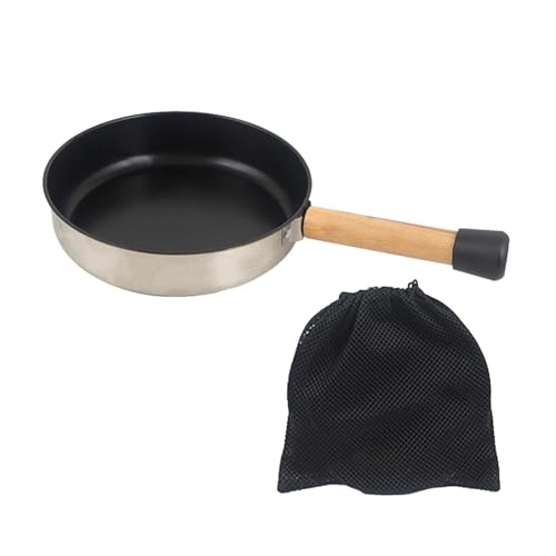 Ailan Portable Frying Pan Griddle Round Aluminum Durable Lightweight Cooking Tool Home Kitchen Camping Cooking Needs Induction Grill Pan Wooden Handle Fry Skillet, Type B