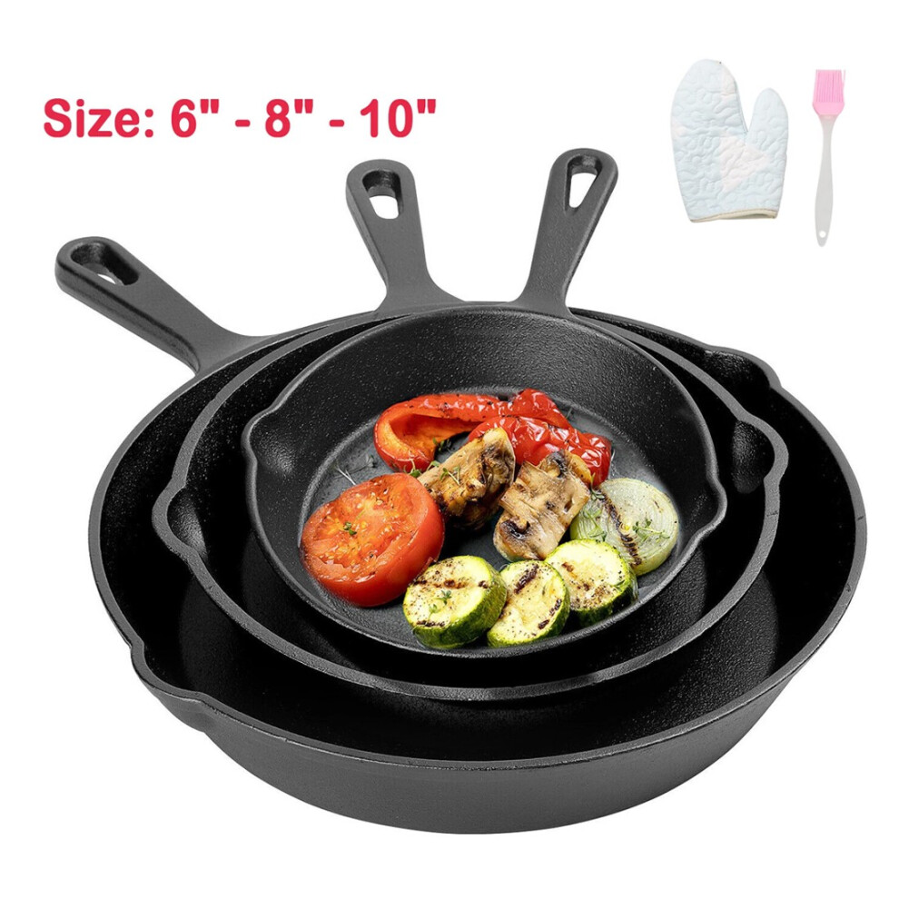 3pcs Cast Iron Non Stick Frying Griddle Pan BBQ Steak Cooking Meat Grill Skillet