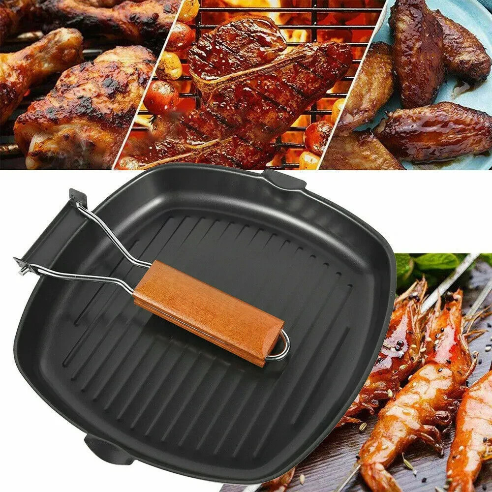 24 CM NON STICK FRY PAN GRILL GRIDDLE STEAK SKILLET FRYING PAN HANDLE BBQ SQUARE