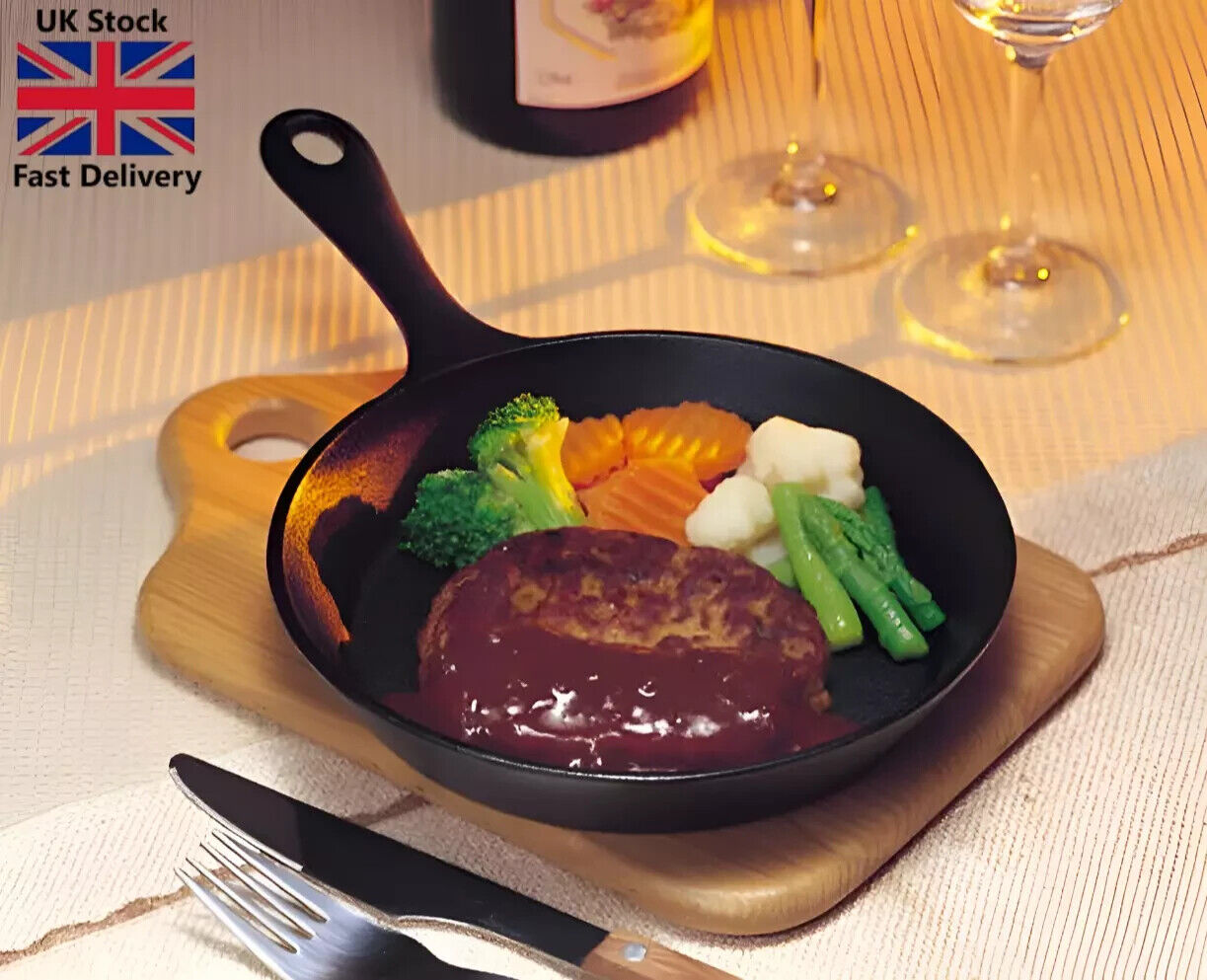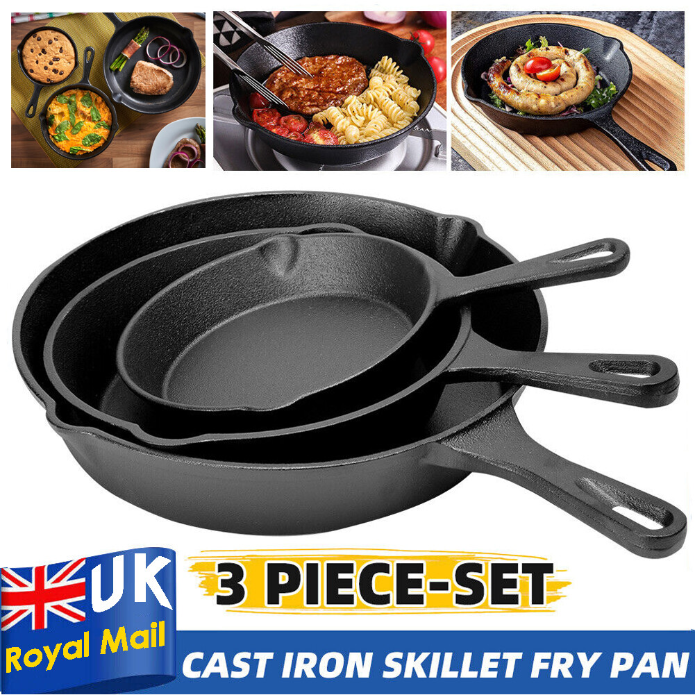 Cast Iron Non-Stick Griddle Frying Pan Skillet Set Grill Fry Cooking Seasoned UK
