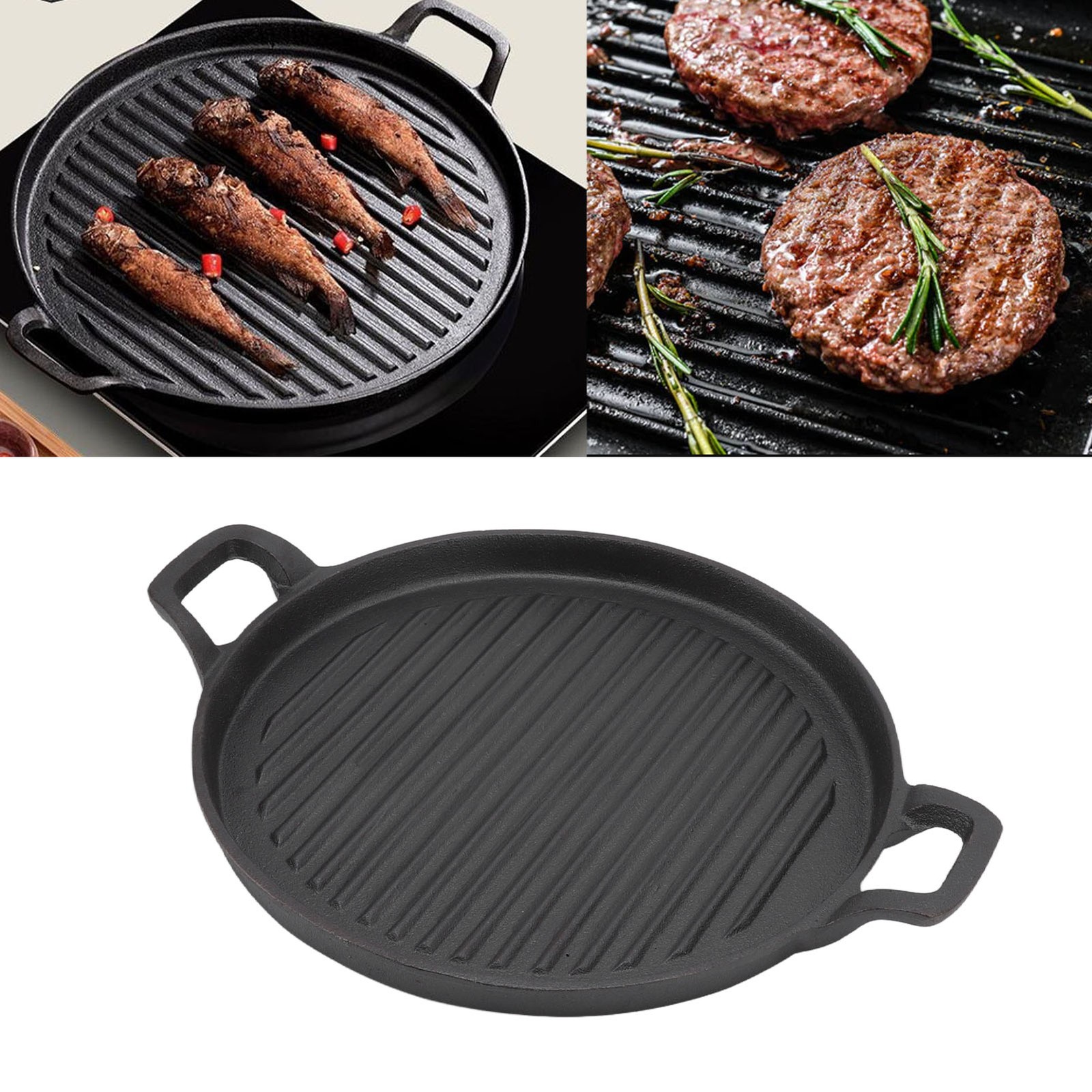 Non Stick Cast Iron Frying Griddle Pan Skillet Cooking Plate Hob Stove BBQ Grill