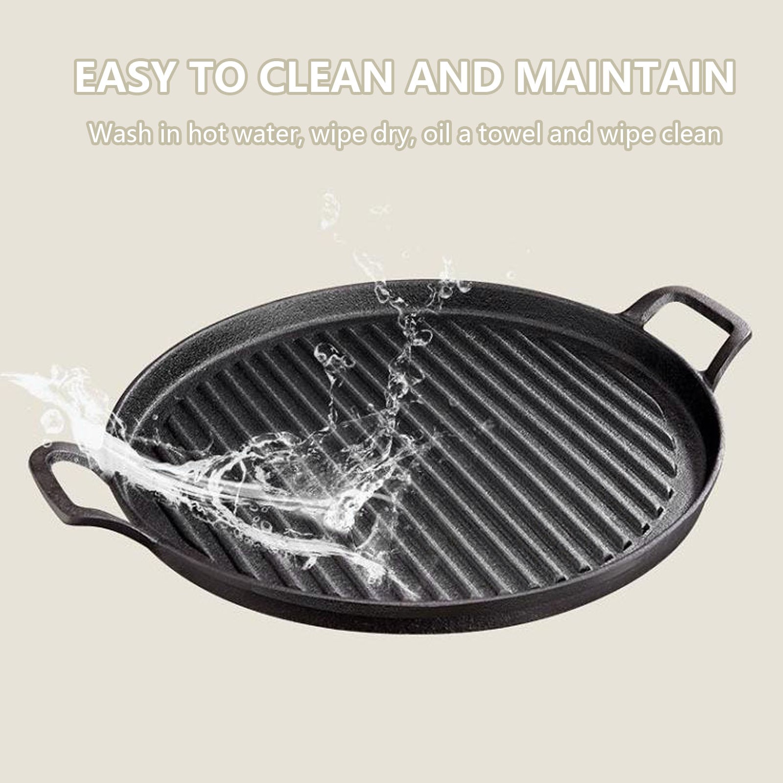 Cast Iron Griddle Reversible Dual Handle Ribbed Round Cast Iron Frying Pan For G