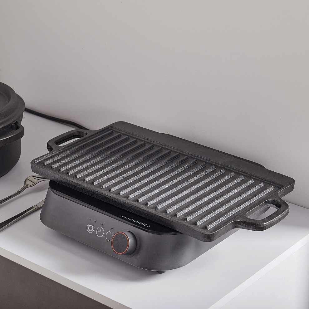 45cm Non-Stick Cast-Iron Reversible Griddle Pan Frying and Grilling