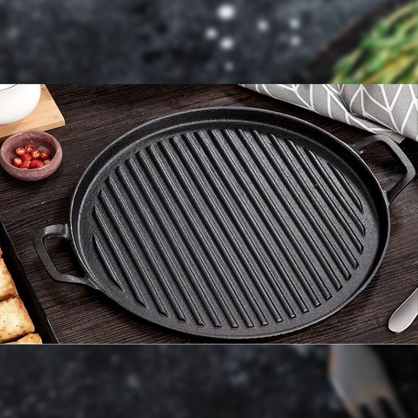 Cast Iron Griddle Reversible Dual Handle Ribbed Round Cast Iron Frying Pan For
