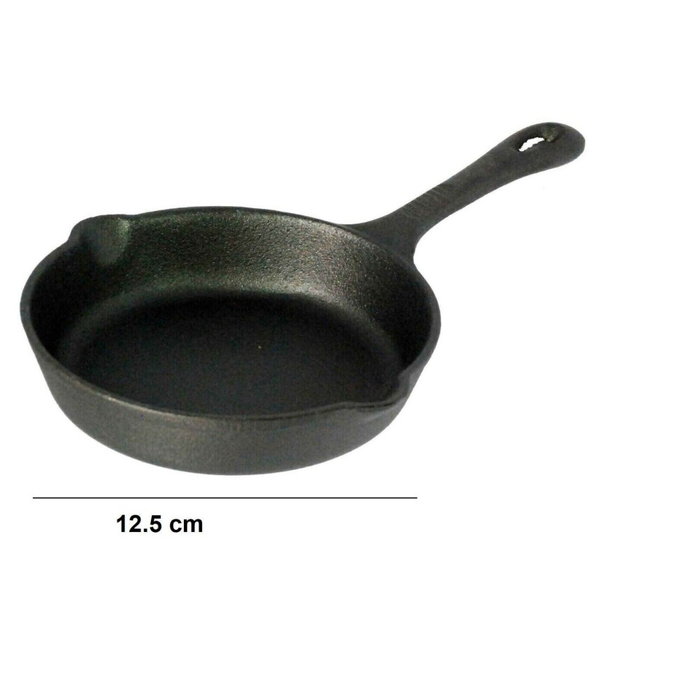 12.5cm Cast Iron Pre Seasoned Skillet BBQ Griddle Plate Frying Pan