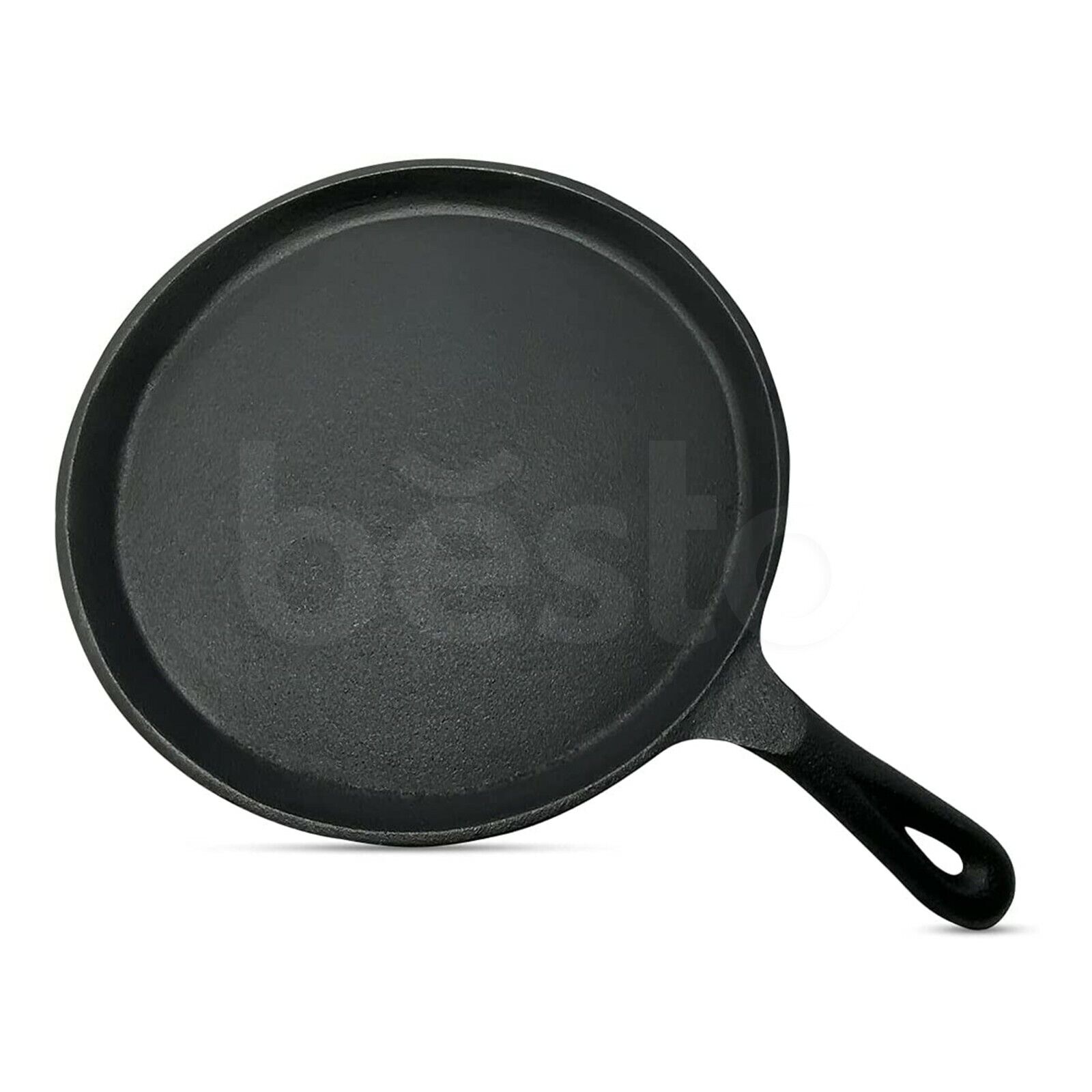 Black Pre-Seasoned Cast Iron Skillet Frying Pan Crepe Griddle BBQ Premium 27cm
