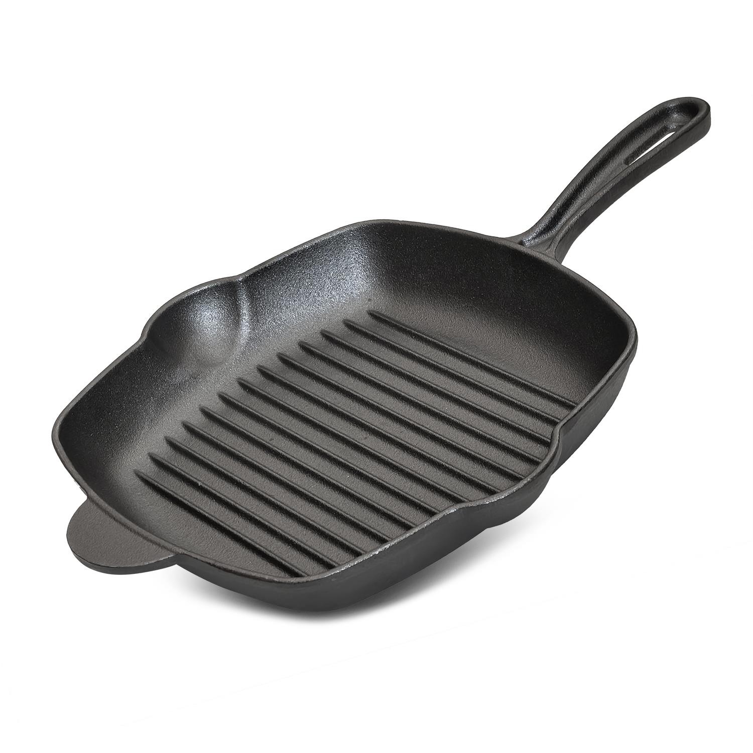 24cm Cast Iron Square Griddle Frying Pan | Pre-Seasoned Non Stick 260°C Oven P
