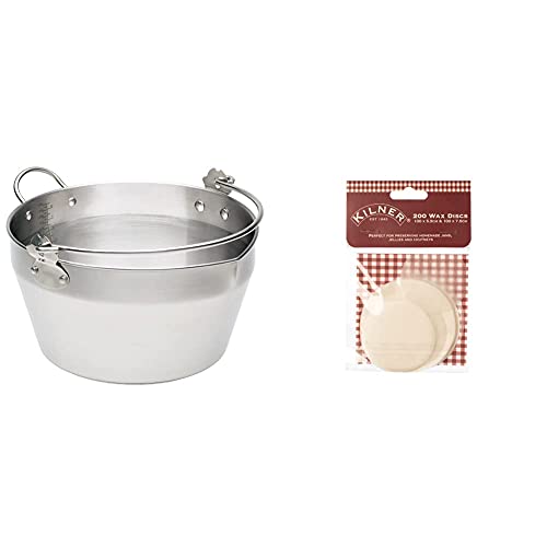 KitchenCraft Home Made Maslin/Jam Pan for Induction Hob with Recipe in Gift Box, Stainless Steel, 9 Litre & Kilner Pack of 200 Wax Discs, White
