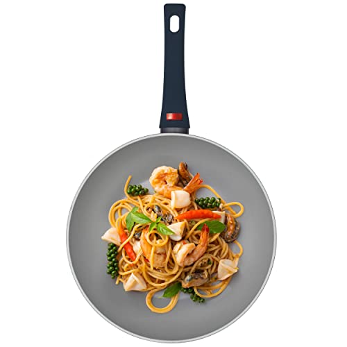 PROGRESS BW10832EU7 Thermo Handle Collection 28cm Stir-Fry Pan, Non-Stick Wok, For All Hob Types, Induction, Gas, Electric, Colour Change Handle Indicates Temperature For Pre-Heating, Forged Aluminium
