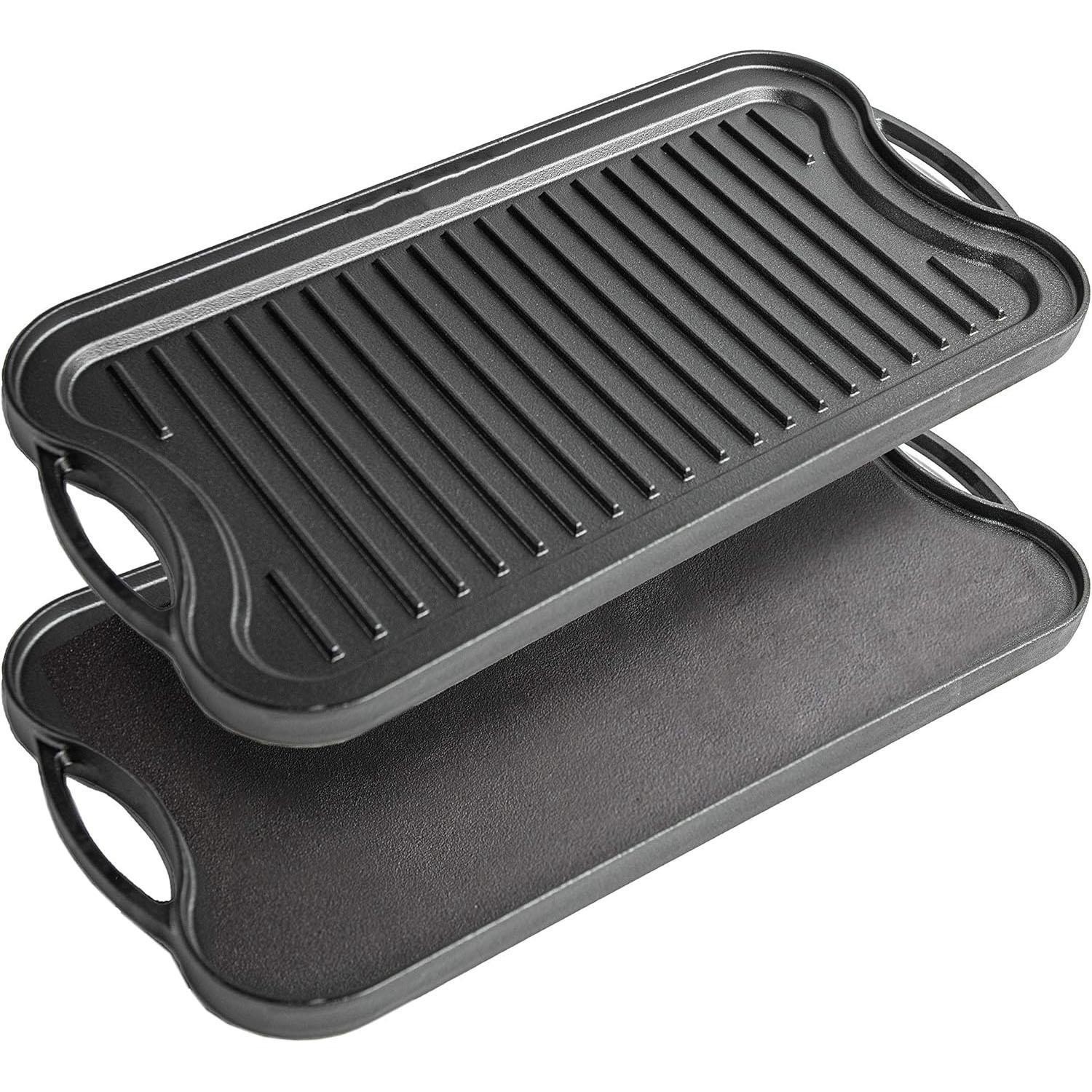 Black Rock Grill Cast Iron Griddle Reversible Pan - BBQ Griddle Plate for Gas bbq, Electric or Gas Hob, Oven- 46cm x 23cm (18 inch x 9 inch), Includes Silicone Grip Handles & Marinating Food Oil Brush
