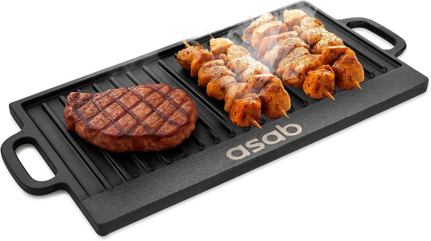 Non-Stick Cast Iron Reversible Griddle Plate Pan BBQ Grill & Hob Cooking Tray