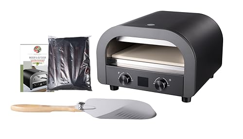 Deco Chef Outdoor Pizza Oven with 2-in-1 Pizza and Grill Oven Functionality, 13" Pizza Stone, Portable Stainless Steel Construction, Pizza Peel, Dough Scraper, Scoop, Slotted Grill (Black)