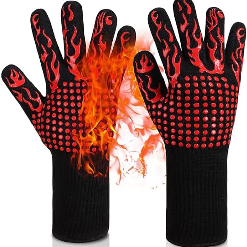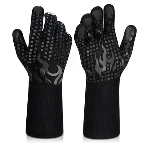 JMbpkduHs Heat Resistant BBQ Gloves,800 Degrees Non-slip Silicone Insulation Microwave Gloves,For Kitchen, Grill, Camping, And Cookware,F
