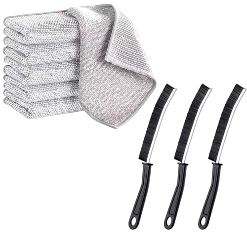 5-Pack Non-Scratch Steel Wool Pads + 3 Brushes | Heavy-Duty Scouring Pads for Kitchen, Grill & Cookware | Rust-Proof Fine Steel Wool with Multi-Surface Cleaning Brush Set
