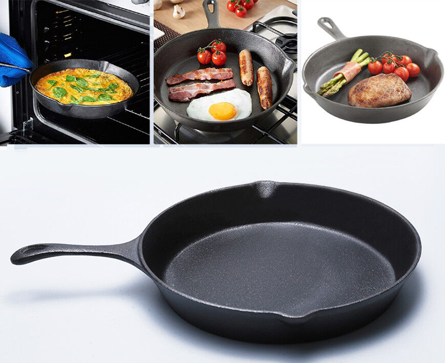 Pre Seasoned Cast Iron Skillet Frying Pan Oven Safe Grill Cookware Griddle Pan