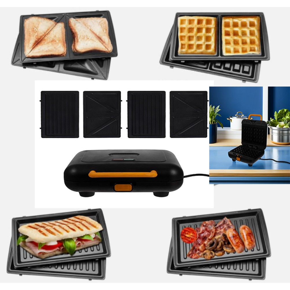 Sensio Home Multi Functional 3 in 1 Stylish Waffle, Deep Fill Sandwich, Panini or Grill Maker Machine Interchangeable Non Stick Easy Clean Plates,