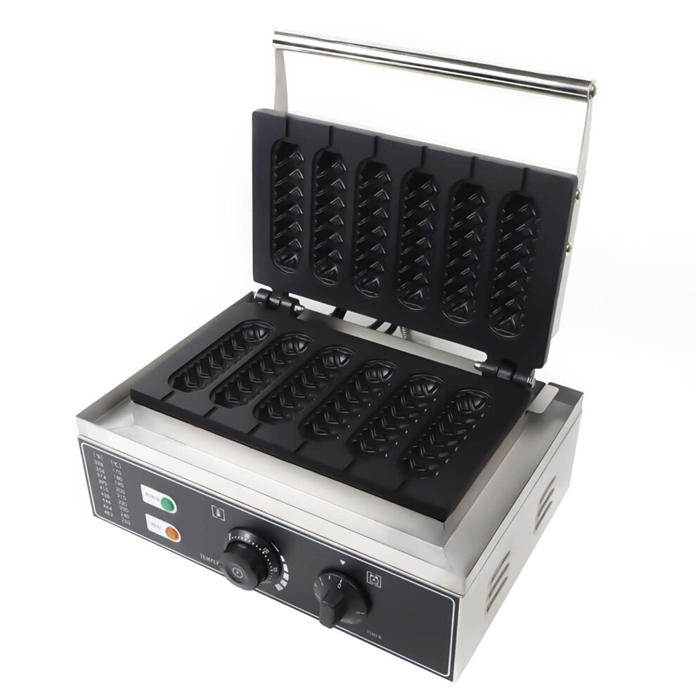 Waffle Stick Irons NonStick, Commercial 1500W Waffle Hot Dog Maker Flip Roller Grill Machine 122482 Temp Control 110V
