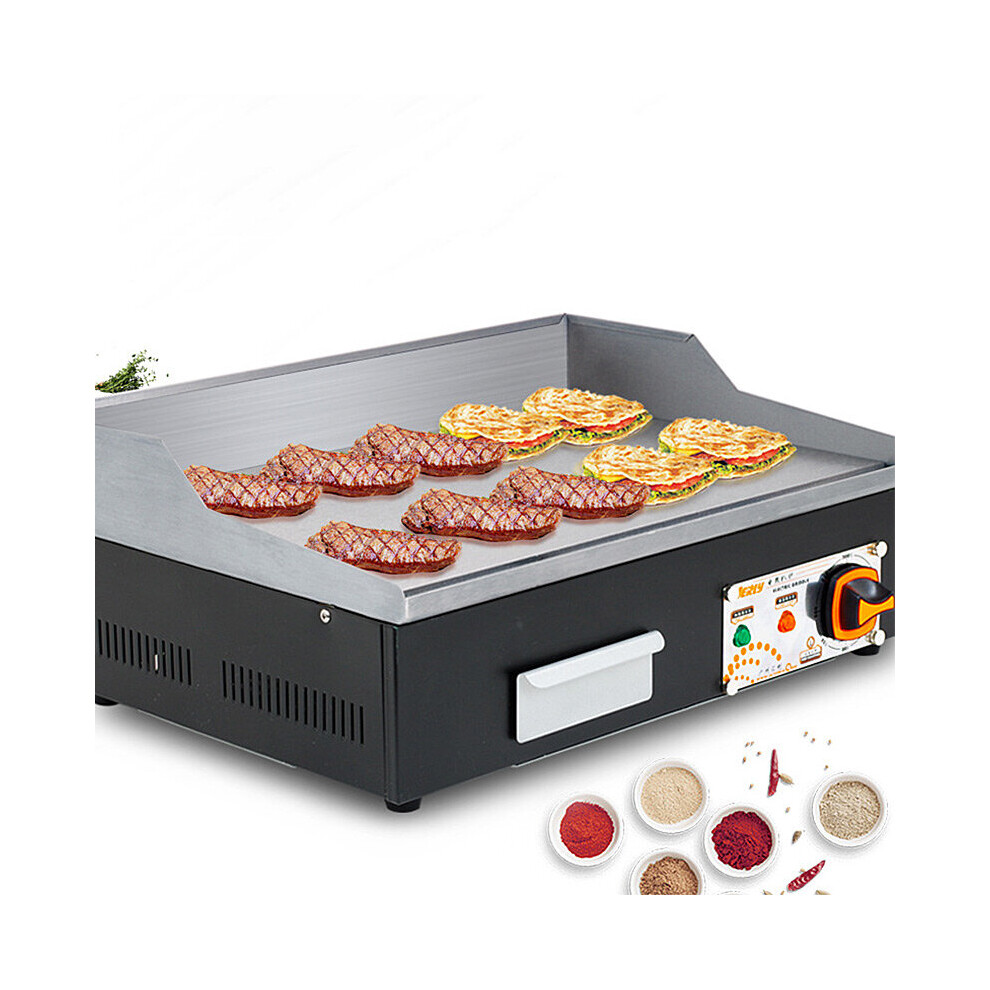 Commercial Electrical Grill Roast Machine Stainless Steel Electric Griddle Grooved & Flat Large Hotplate Teppanyaki Grill