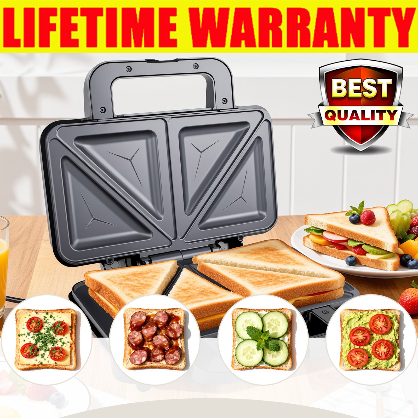 Sandwich Waffle Maker Toaster Grill Nonstick Breakfast Machine Cool Touch Handle
