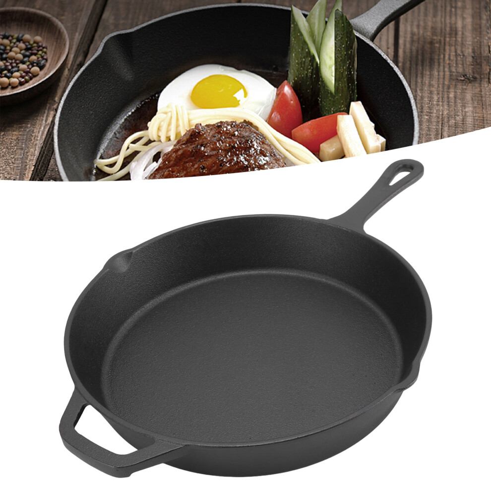 Frying Pan Cast Iron Skillet Uncoated Kitchen Fry Pan Grill Cookware for Indoor Outdoor Camping Cooking Grilling 30x6cm/11.8x2.4in