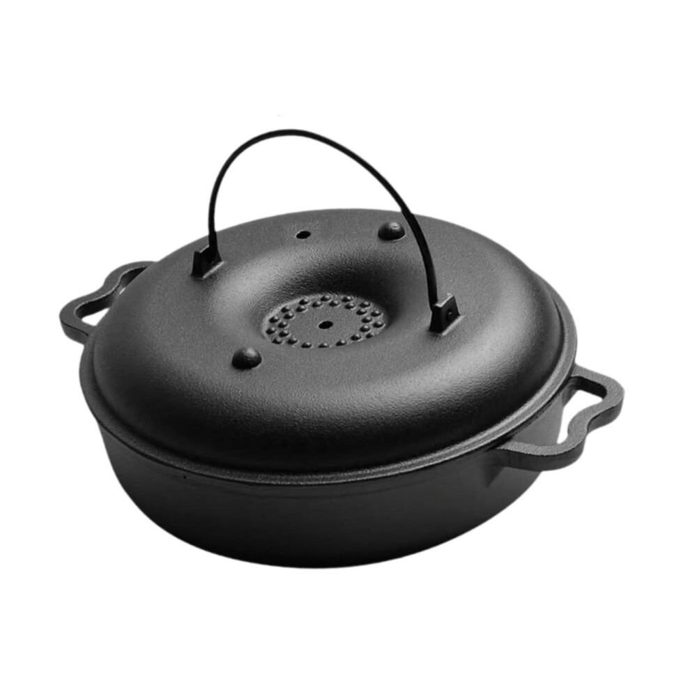 Portable BBQ Pot Grill Pan Barbecue Cookware Set With Lid For Outdoor Camping Picnic Enamel Material 22x22x10cm Includes Net Glove Clamp